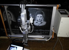 Гравировка портрета и надписи на установленном памятнике на Щербинском кладбище