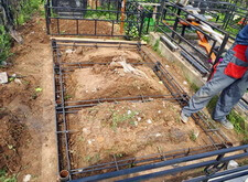 Выкапываем между захоронениями траншеи, между получившимся холмами ввариваем надёжный каркас в четыре арматурных кольца.